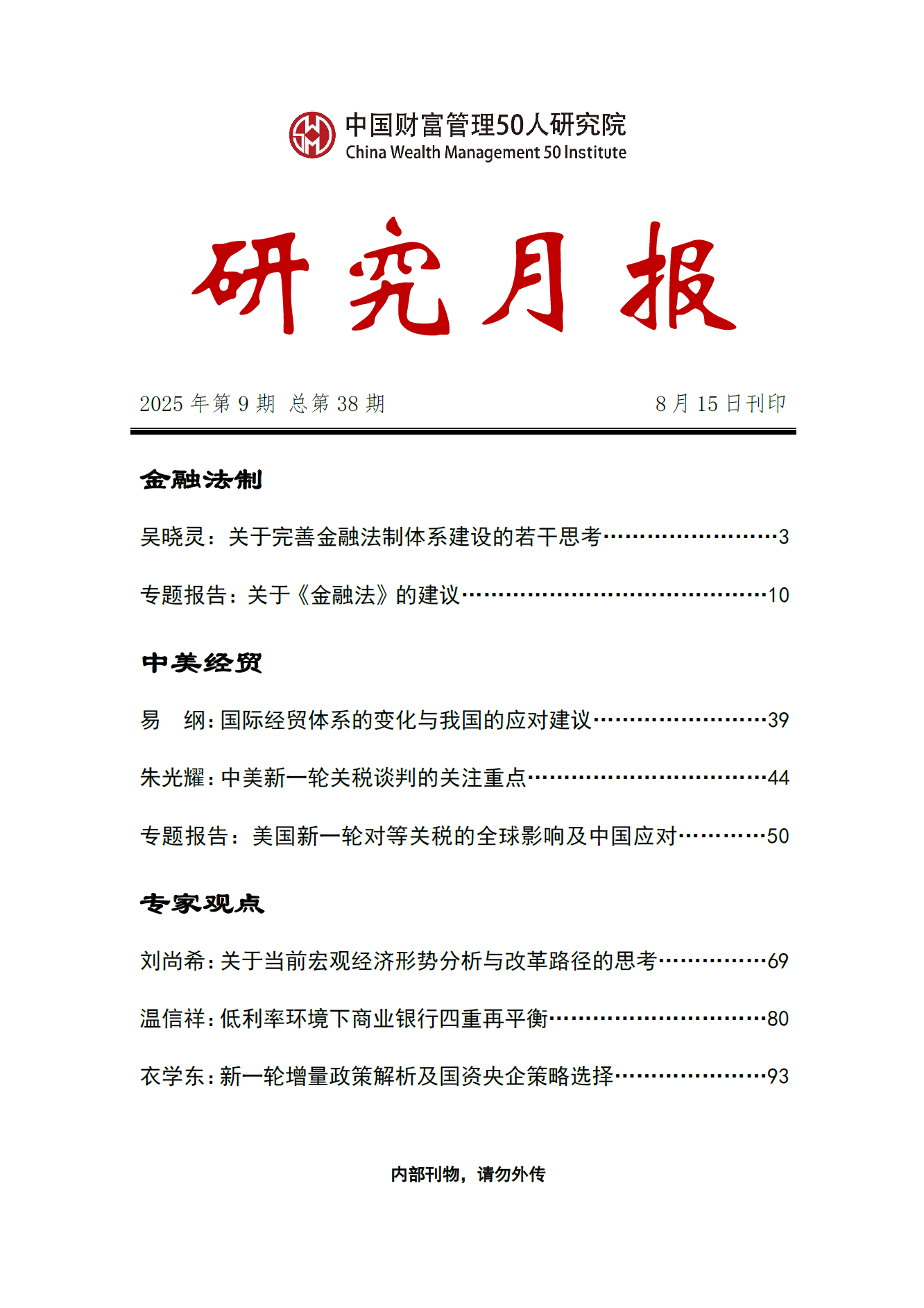 本期《研究月报》分为“金融法制”“中美经贸”和“专家观点”三个栏目。