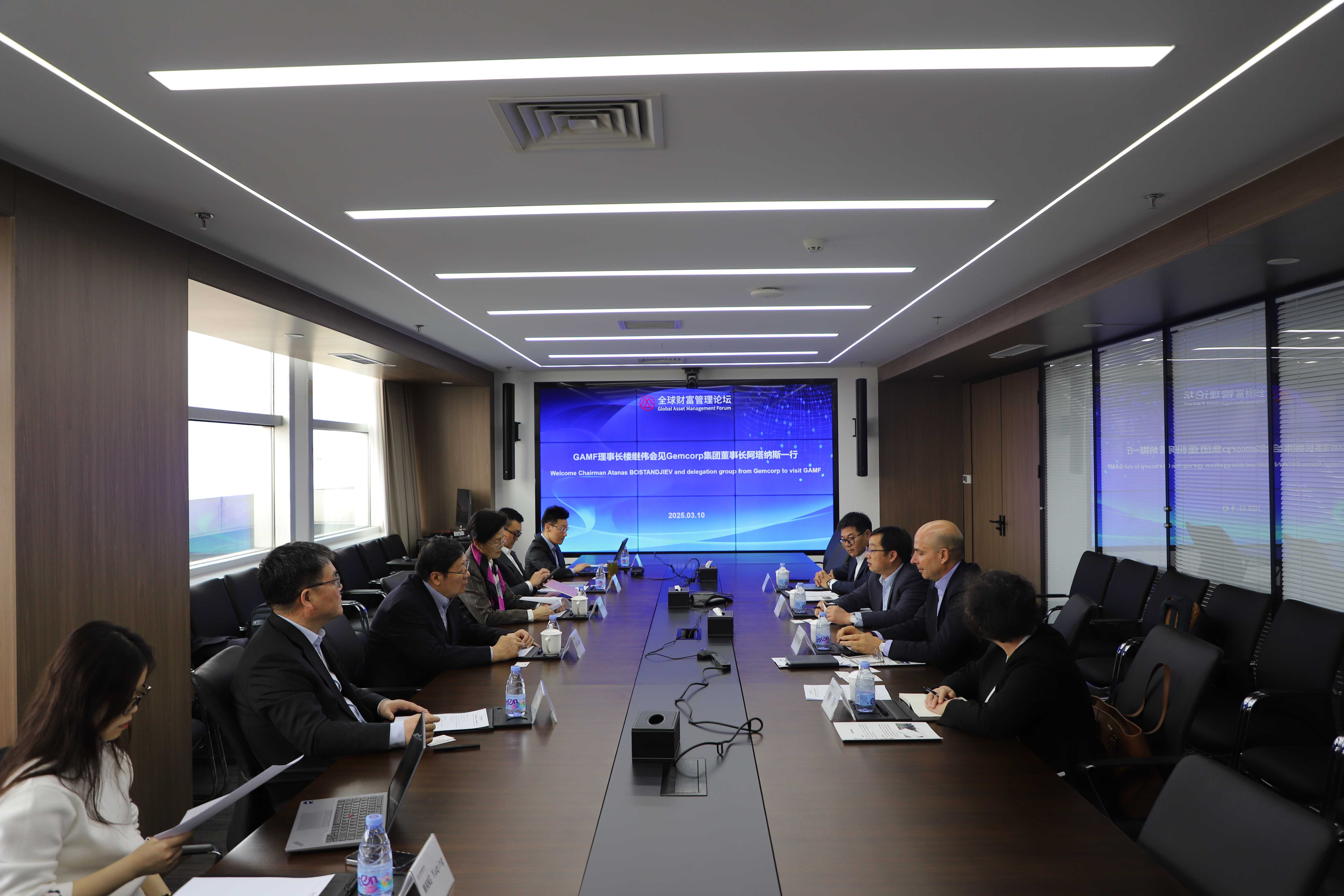 2025年03月10日,英国Gemcorp集团董事长阿塔纳斯先生(Atanas BOSTANDJIEV, Group Chairman and CEO, Gemcorp Group)及代表团一行共4位资深投资专家到访全球财富管理论坛,与论坛领导及专家就“两会”所传递的中国政府政策动向、当前地缘政治环境下,中非合作、中国与中东合作前景,以及中国的投资机会等热点议题进行研讨。